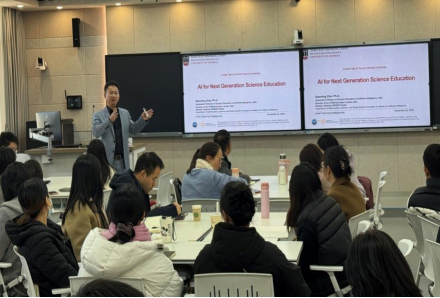 翟教授现任美国乔治亚大学科学教育与人工智能领域副教授,主持“人工智能赋能STEM教育中心”与“国家GENIUS教育中心”(National GENIUS Center)的工作。结合自身深耕该领域的研究成果与实践经验,以“人工智能助力下一代科学教育”(AI for Next Generation Science Education)为题,探索AI在赋能科学学习、重构教学模式、优化测评体系中的应用路径与实践方法,系统阐释了人工智能如何降低科学研究门槛、提升学习效率,并通过案例生动展示了虚拟仿真实验、智能学情诊断等技术在物理、化学、生物等学科中的应用场景。
